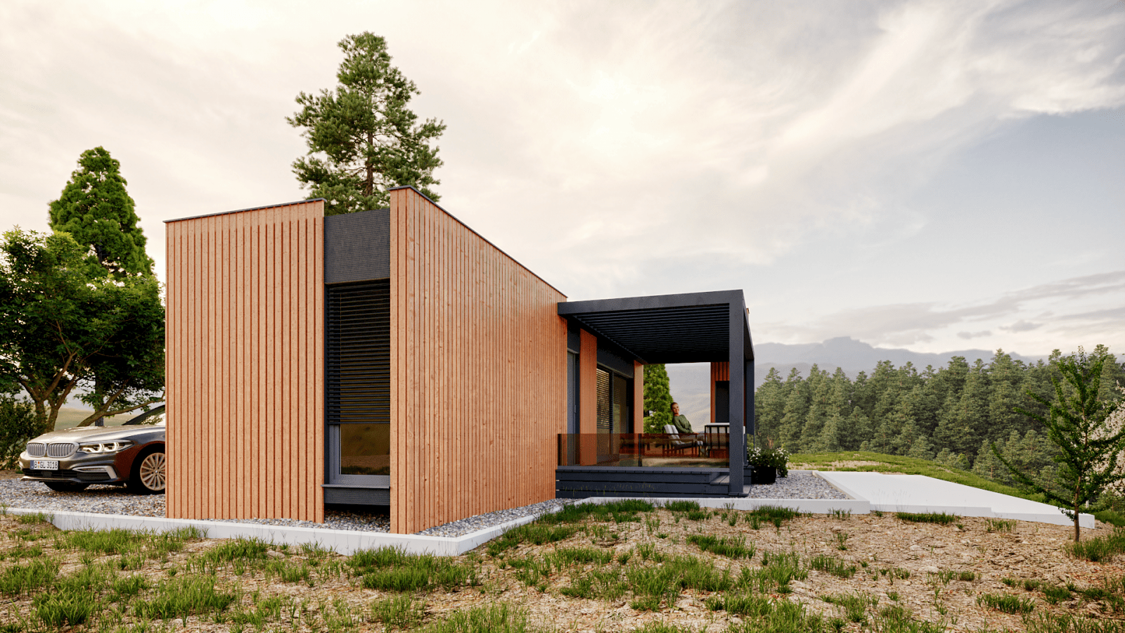 MMH21_M.01 is a mobile home, consisting of one residential module with a covered terrace, intended for four people. In addition to the living room, dining room, hallway, bathroom and bedroom, there is a large terrace, as an extension of the living area. It is intended for socializing and gathering, and can be equipped with an additional, standard barbecue module and bioclimatic pergola, so that your stay in nature was pleasant regardless of the weather. WHY WOULD A PIECE OF NATURE NOT BE DESIGNED TO YOU ?