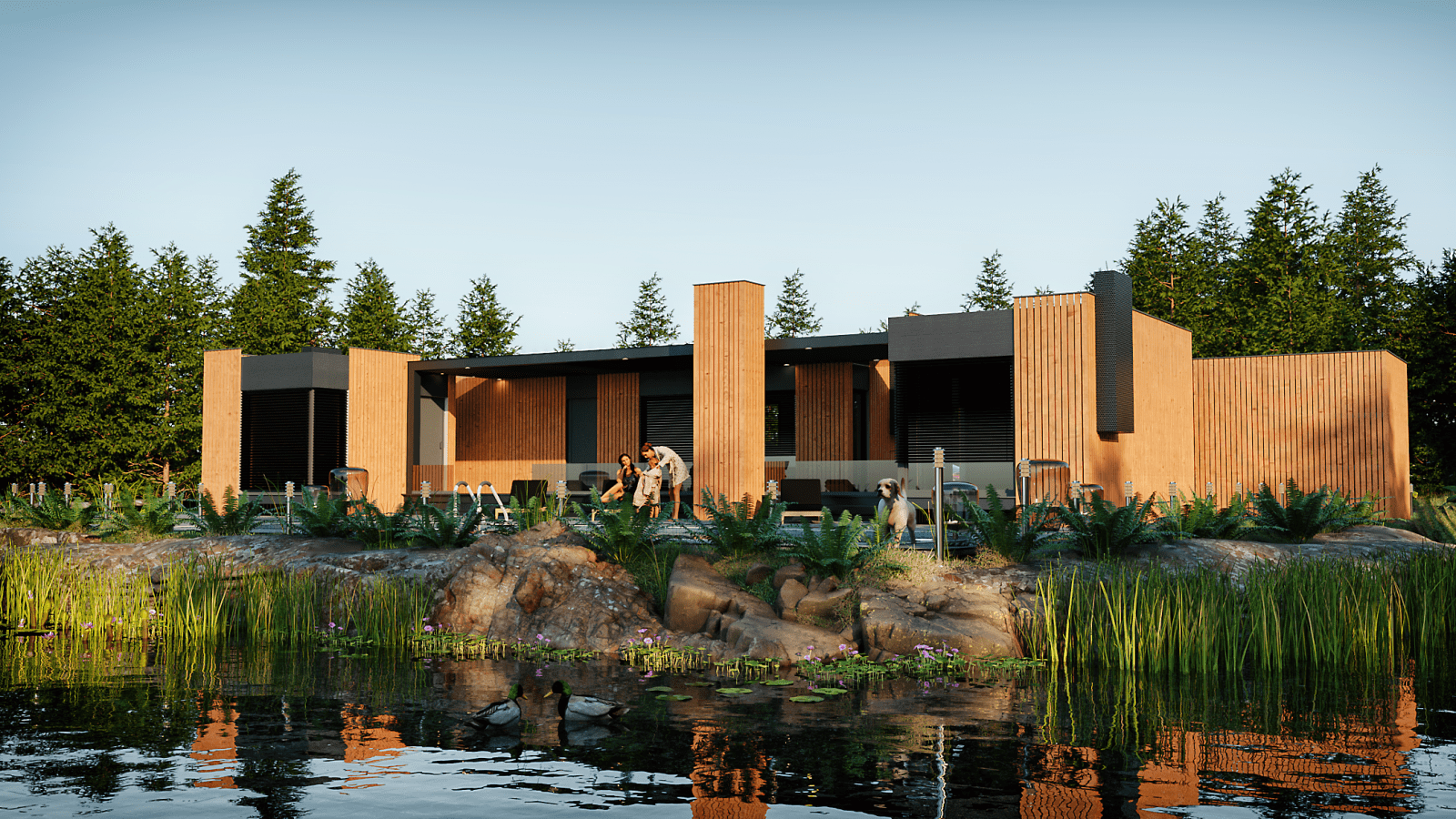 MMH21_XL.01 is the most luxurious mobile MMH complex, intended for eight people. It consists of four modular units, which with their consistent principles of materialization give the impression of one whole. One of these modules is a garage space, and the other three have a residential function. They are organized around a large, covered, multifunctional terrace, which is designed as a place to relax and socialize, and can optionally be covered with a bioclimatic pergola, to make your stay in nature pleasant even on rainy days. NEW TIME INFLUENCES THE FORMATION OF NEW HABITS AND THE MAKING OF NEW DECISIONS. LET YOUR CHOICE BE MMH OBJECTS!